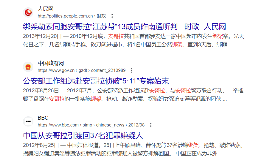 因为当地黑人警察的能力有限,根本无法侦破这种绑架案,以至于中国公安部先后多次派遣工作组前往安哥拉,中国警察亲自参与侦破,才将这些绑匪的嚣张气焰打击下去。