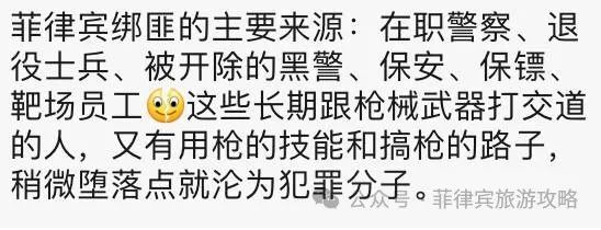 既然根源上无法解决,就只能从渠道上预防,这也是今天写这篇文章的初衷,讲一下菲律宾籍绑匪的构成,帮助华人们避坑。